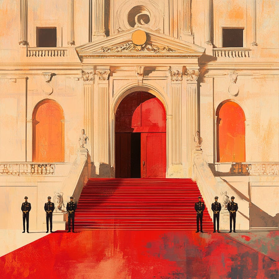 The limousine stopped in front of a wide and high staircase with red steps that led to large red doors with handles of gold that had even more standing at attention guards in even nicer uniforms than the guards who stood beside the gates outside. Ariadne opened her door in the back of the limousine and walked around to the other side where she opened the door for V. She held her left hand out and V exited the automobile and with Ariadne ascended the red steps to the red doors which were ceremoniously opened for them when they reached the top step. V was now the guest of the King in the Summer Palace and as a guest of the King in the Summer Palace he was afforded certain comforts.
