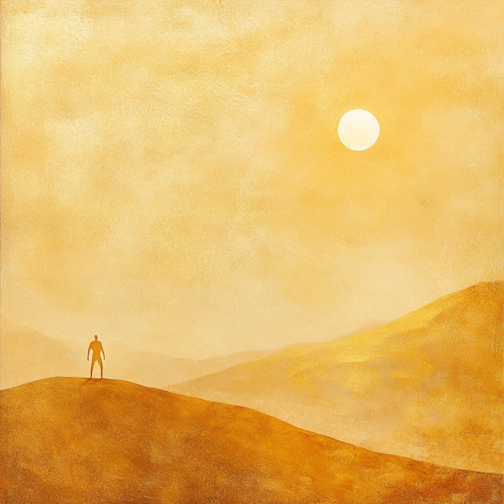 As his body burned, the man stood. He walked back into the desert.